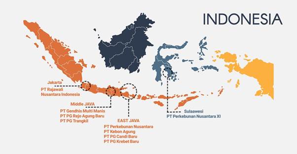 인도네시아는 세계적인 사탕수수 생산국 중 하나로, 다양한 설탕 가공 업체들이 운영되고 있습니다.