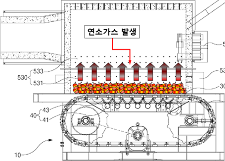 이때 연소가스의 연소에 의하여 일반적인 고형화 연료 연소와 매우 다르게, 가스연소의 형태가 이루어져 매우 높은 고온 연소(1,200도 이상)가 이루어지게 된다.